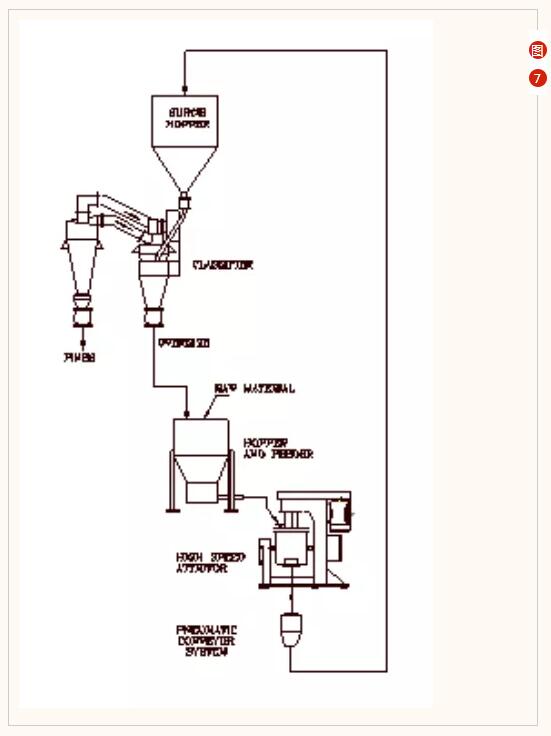 空氣分級(jí)機(jī)或篩網(wǎng)可與SD或HSA攪拌磨相結(jié)合,形成一個(gè)封閉的研磨過(guò)程循環(huán)。通過(guò)不斷取出細(xì)粉并重新裝入過(guò)大的顆粒,可以實(shí)現(xiàn)非常有效的窄分布細(xì)磨。(圖7)