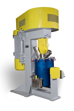 HSA型高速干磨機(jī)常用于連續(xù)式研磨。物料由頂部加入,利用離心力從底部卸料。通常加入的物料粒徑較?。ㄒ话銥?0目),最終研磨后的粒徑可達(dá)微米級(jí)。HSA型可用于纖維類和聚合物等物料的研磨。
